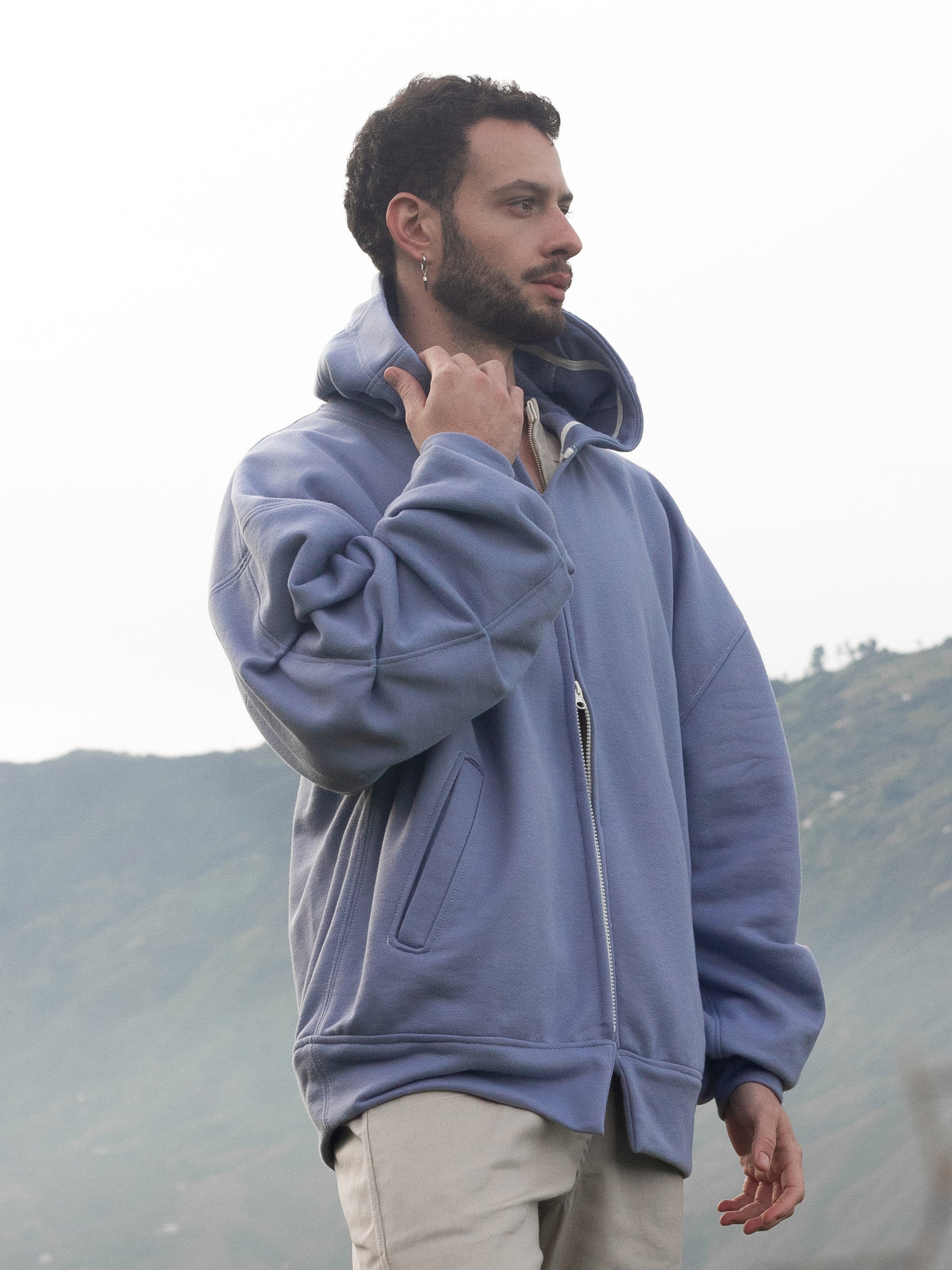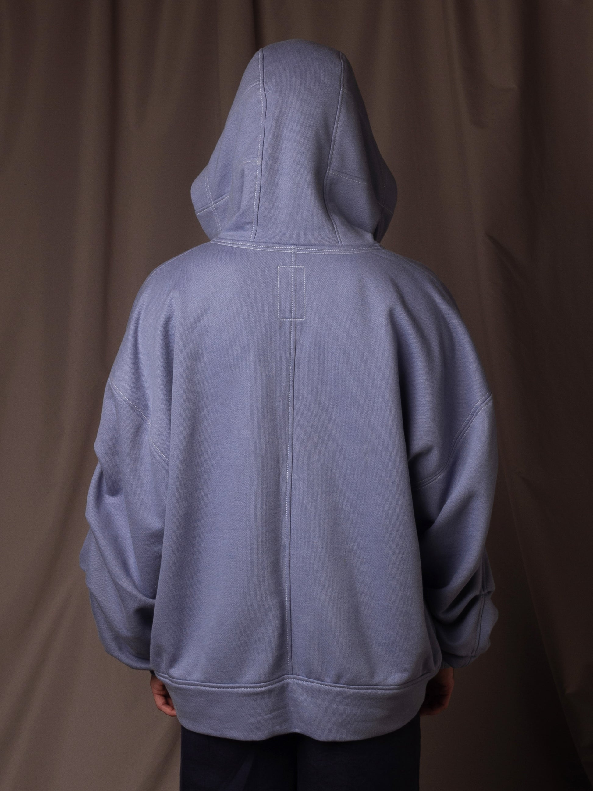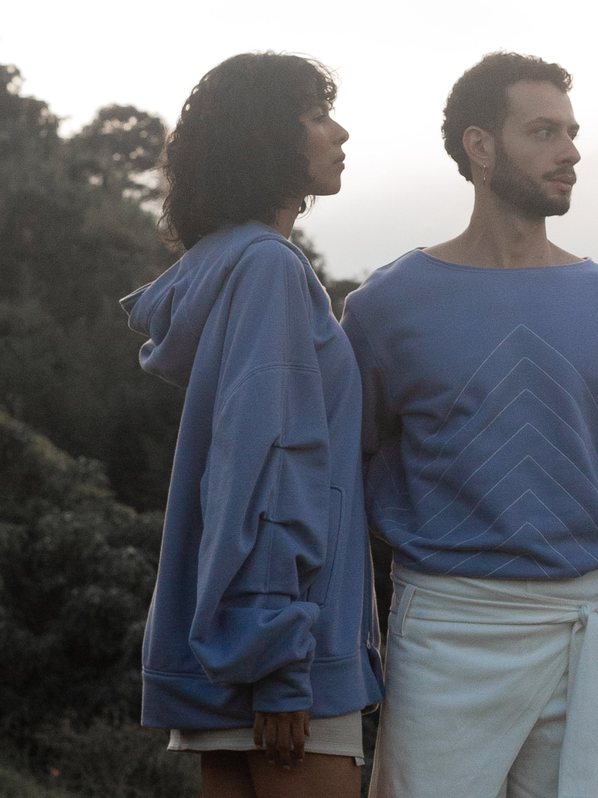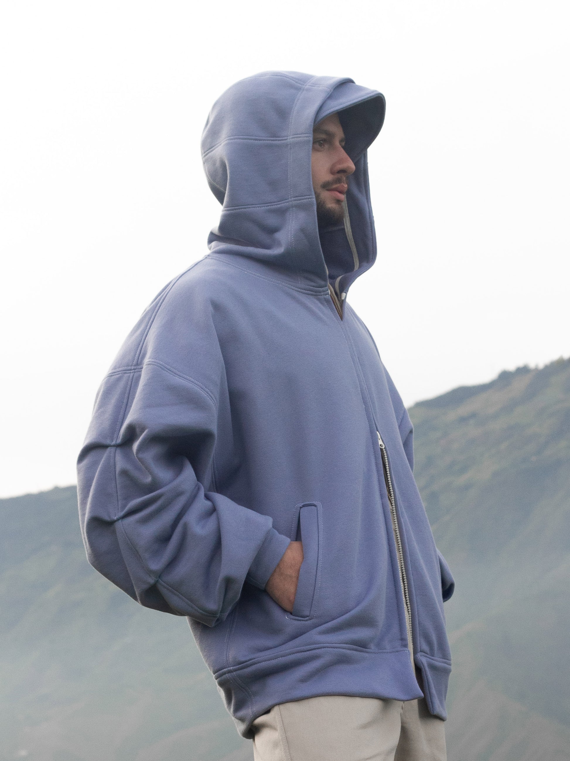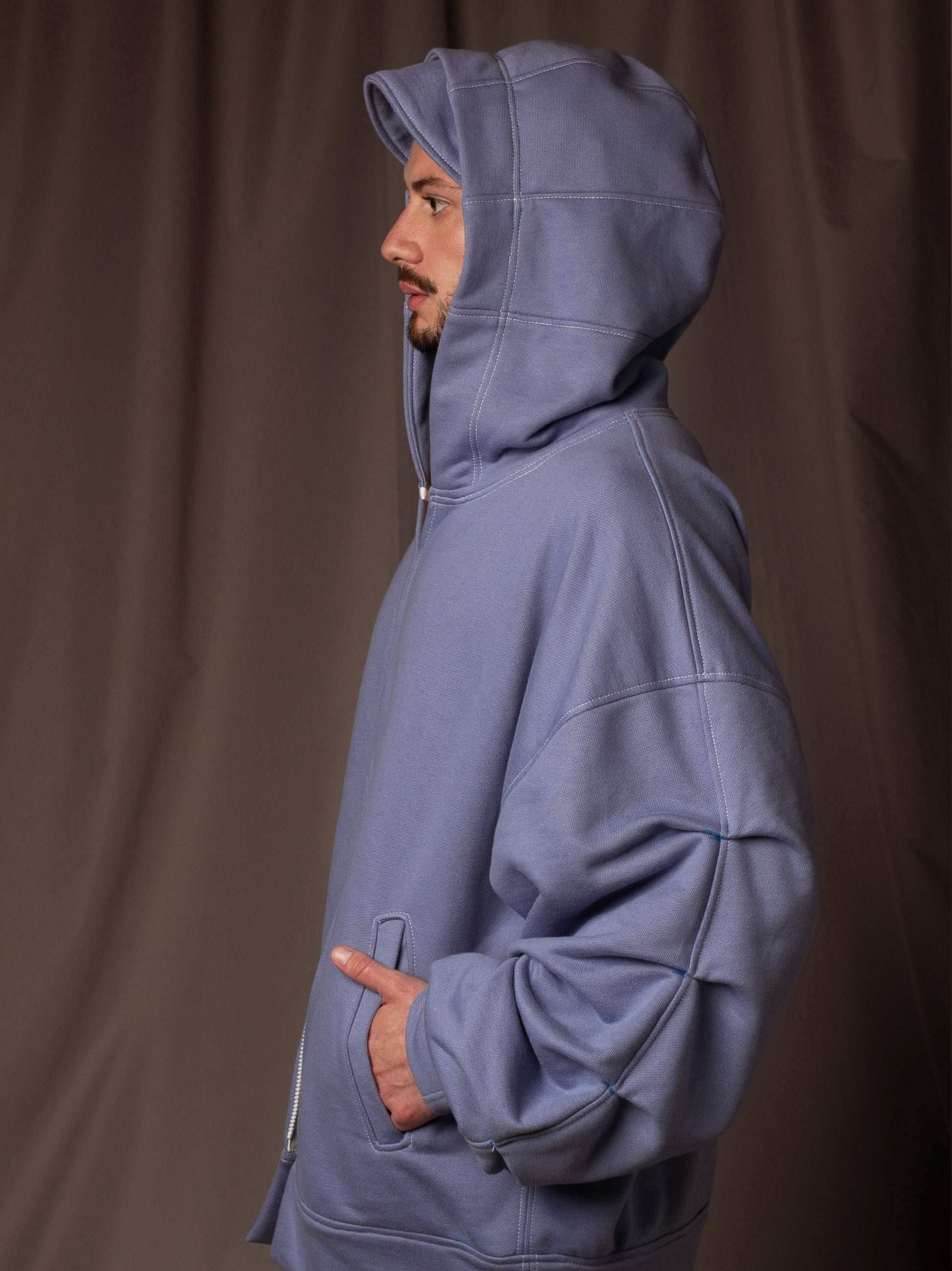 Buso sin género, hecho en tejido de punto y confeccionado en hilo 100 % algodón. Diseñado con capuchas, cierre inverso y bolsillos delanteros.